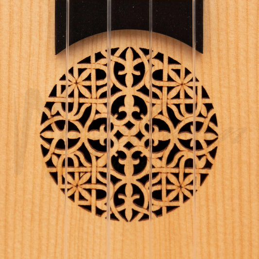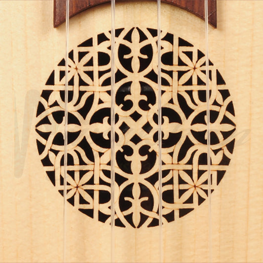 The Baroque ukulele is ideally suited for classical and finger style music. Each size is embellished with a beautiful rosette design. Our collection of Baroque ukuleles has a warm mellow tone with a classic look. The round back bowl back is connected with solid sycamore, solid walnut neck and the solid European spruce top is decorated with a classic rosette design. The bridge is made of walnut wood, which integrates with the bone saddle. Muzikkons traditional baroque ukuleles are available in a selection of woods including; lacewood, Rosewood and Walnut wood. The baroque ukulele is played similar to a standard ukulele. It comes with satinwood strap button, extra String Set and Padded Nylon case for traveling & safety.