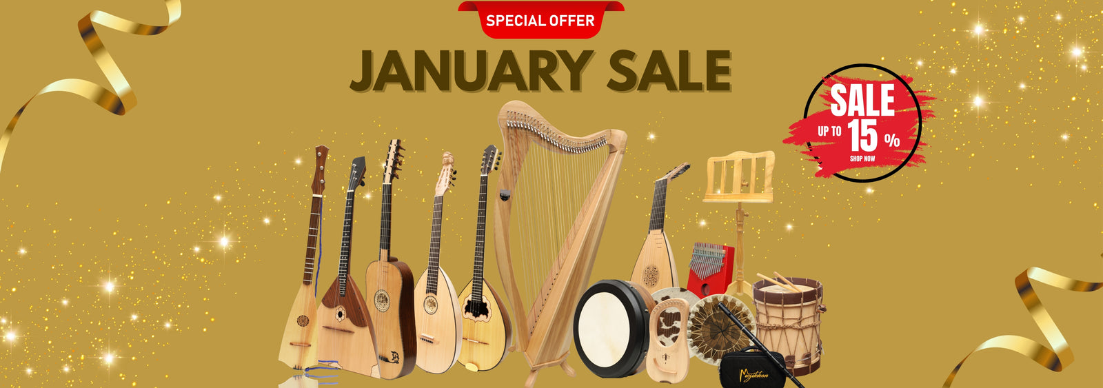 Dus, of je nu een beginner of een professionele muzikant bent, bekijk ons assortiment Ierse Bodhrans, Etnische en Sjamanistische Frame Drums, Traditionele Ierse en Native Fluiten, Keltische en Gotische Harpen, Ierse en Jazz en Countrybanjo's en Mandolines, Griekse en Ierse Bouzouki's, Russische balalaika's, luitgitaren, platte en ronde ukeleles en nog veel meer.